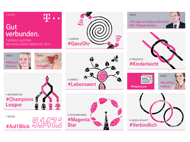 „Gut verbunden. Nachhaltigkeitsbericht 2013 T-Mobile Austria“ findet sich unter diesem Stichwort im Apple App Store als iPad-App sowie unter dem Link https://itunes.apple.com/at/app/t-mobile-austria-gut-verbunden/id681743143?mt=8.